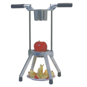 The Apple Hacker is an easy way to slide apple wedges for baking and cooking. Just a pull of the handles cuts the apple into 8 slices and cuts out the core. A convenient way to speed up sliced apple production.