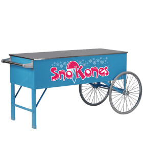 Quickly and easily transport your snow cone supplies on a crowd-drawing mobile platform with the Gold Medal 3150SK 48" two wheel sno-kone cart! This convenient cart is large enough to fit an ice shaver and a supply of cones, and it leaves a generous space to the side for syrups or to use as a work area. Its stainless steel top provides outstanding durability, and a convenient handle on the end of the cart makes it easy to move from place to place. And thanks to this snow cone cart's vintage appearance, you're sure to draw the attention of those around you.