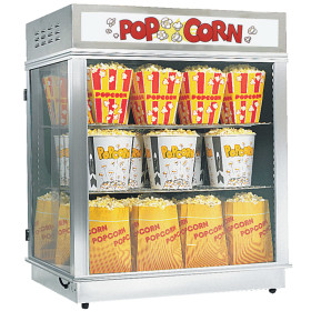 Ideal for busy locations, this three shelf high capacity Astro popcorn warmer features an illuminated sign to help draw in the crowd. It includes sliding doors on both sides for quick and easy loading and unloading of the popcorn. This warmer features the same popcorn freshener system found on the Pop-O-Gold. This high capacity forced hot air popcorn freshener system works quick to keep the popcorn as fresh as possible. It has more space inside then the Astro 16 warmer which allows for more storage of your popcorn.