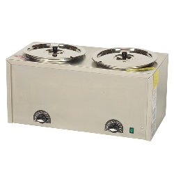 4211 Twin Caramel Dip Warmer. This Deluxe Water Bath Warmer is a necessity to avoid burning any of the Caramel Dip or Caramel Toppings. They contain cream and would burn if placed in anything other than this "double-boiler" cooker. Cooks caramel apples at the recommended temperature of 180 degrees. Two GM-2194 stainless steel insert bowls are needed and NOT included and must be ordered separately.