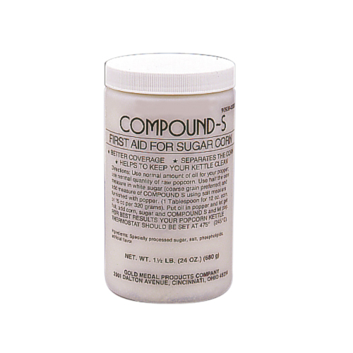 Compound "S" is a popular counter to use when you are putting plain sugar into your popper kettle during the popping process. Compound "S" actually helps keep the kettle cleaner. The improved, Pro Strength Compound "S" is more concentrated and further reduces the carbon build up when you pop with sugar. A little goes a long way! Only use approximately one tablespoon for each batch of popcorn. Larger kettles may need just a little more. Available in a 35 lb. pail.