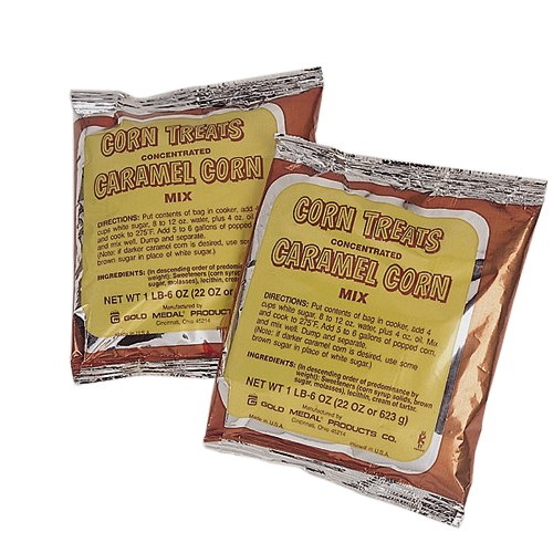 This concentrated Caramel Corn Mix is being used worldwide-works great in Corn treat machines. (12) 22oz foil pouches per case, each 22oz. pack produces 70-80oz of carmel corn or 5 gallons of caramel.