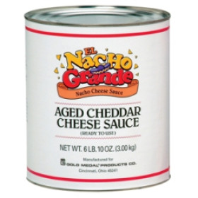 The finest Nacho Cheese Sauce available has a rich cheddar cheese taste. No MSG! Use this sauce plain for milder Nachos; add pepper juice to suit desired hotness. Sold as Six, #10 tins per case.