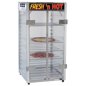 Keep almost any menu item warm with this 18.52"W x 18.5"D heated holding cabinet and merchandiser. Warming cabinet comes with two lexan access doors and six adjustable wire shelves to accommodate a variety of food items making this a really universal merchandiser perfect for any concession stand or snack bar.