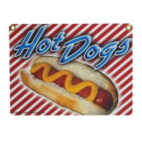 Gold Medal Heavy Duty Hot Dog Sign is 16"L x 12"H.
