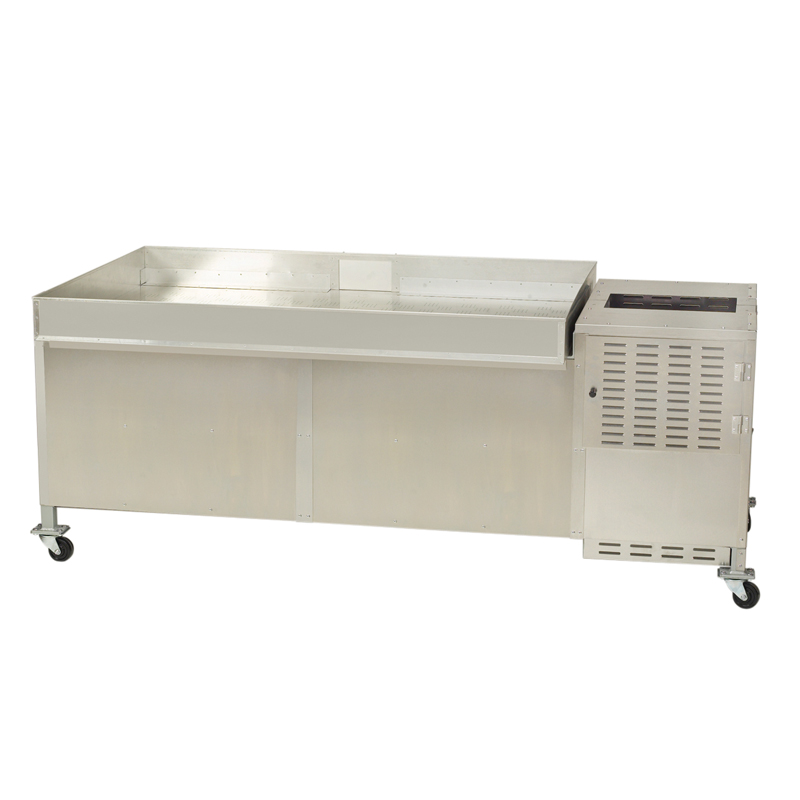 This cooling system is designed for use with the Karamel King. Cools hot caramel corn in minutes! 40" x 60" air cooled pan for 10 or 20 gallon mixer. Mounting for a pedestal style Mark 10 or 20 gallon Karamel King. Integrated into a rolling base. Cooling pan included.
