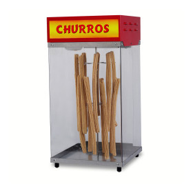 This is our most economical churro merchandiser! The lighted lexan display area with (non-motorized) rotating display is compact and will fit on almost any countertop. Please note that the cabinet does not have a specialized heating system and uses a 75 watt reflector light to illuminate the inside of the cabinet.