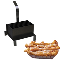 For use with ribbon element electric fryers with non-stick coating. Mold for funnel cake sticks with platform makes (6) sticks (funnel cake fries / fingers) at a time. Simply set the platform in the floor of your funnel cake fryer, place the mold onto the platform then add a small amount of batter to each mold section. Fry them a bit, then lift off mold and let the funnel cake sticks float free. Repeat the process for more funnel cake sticks. Non-stick coating. Dimensions: 7.5" H x 9" W x 10.5" D