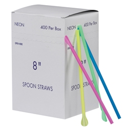 The neon plastic spoon straws are rapidly becoming the favorite for both Sno-Kones and Slush. They are about " (20 cm) long with one end die-cut and flattened into a spoon-like shape. Sold by the case of 10,000. Packed 25 Boxes of 400