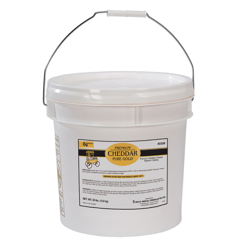 If you like our Cheddar Pure Gold, you'll love the new rich creamy cheese taste of our Premium Version. Just in time for fall events and holiday tim sales, the new Premium Cheddar Pure Gold is a Trans Fat Free paste and has a deep, creamier cheddar taste. It's available in 30 lb tubs. This is easy to store and simple to use! Use 2 cups paste to 5 gallons measure of popped corn.