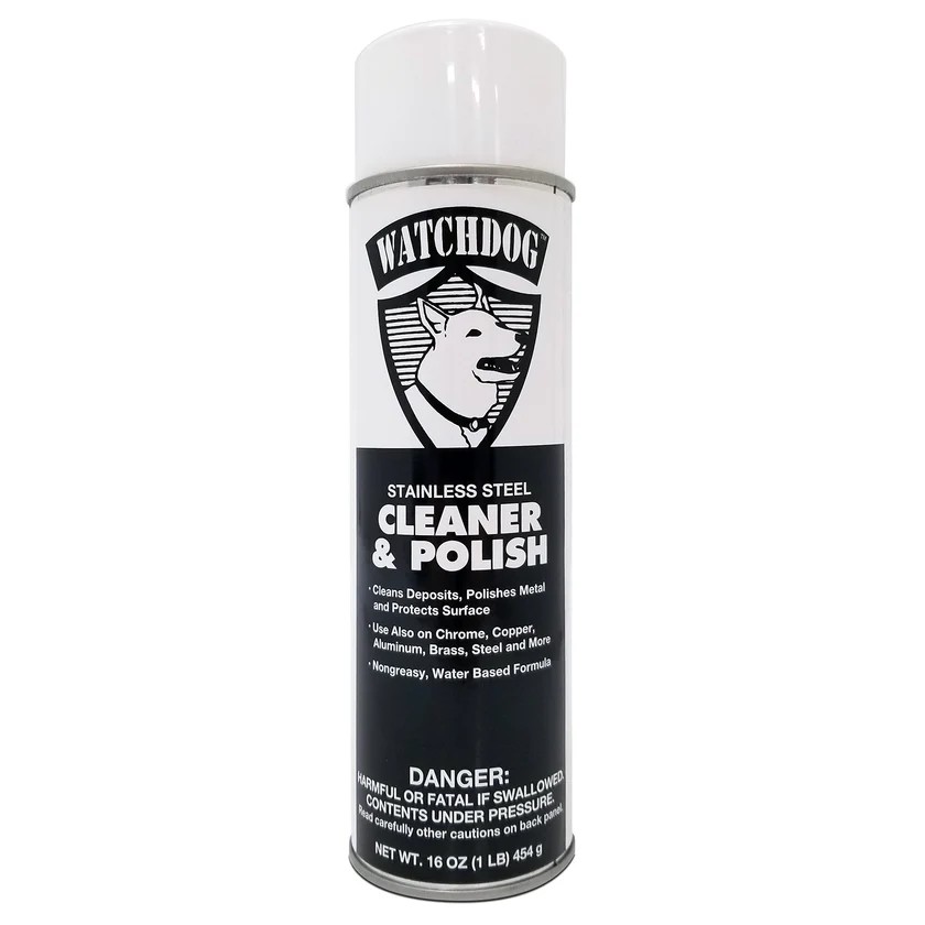 Clean machines run better and longer. This aerosol Watchdog Stainless Steel Cleaner #2088 removes deposits, polishes metal, and protects your machines' stainless steel surfaces. It also works on chrome, formica, copper, aluminum, brass, steel and more, and contains no chlorinated solvents or ozone depleter. Make sure to add this cleaner to your cleaning products. (18-oz. cans - 1 Each)