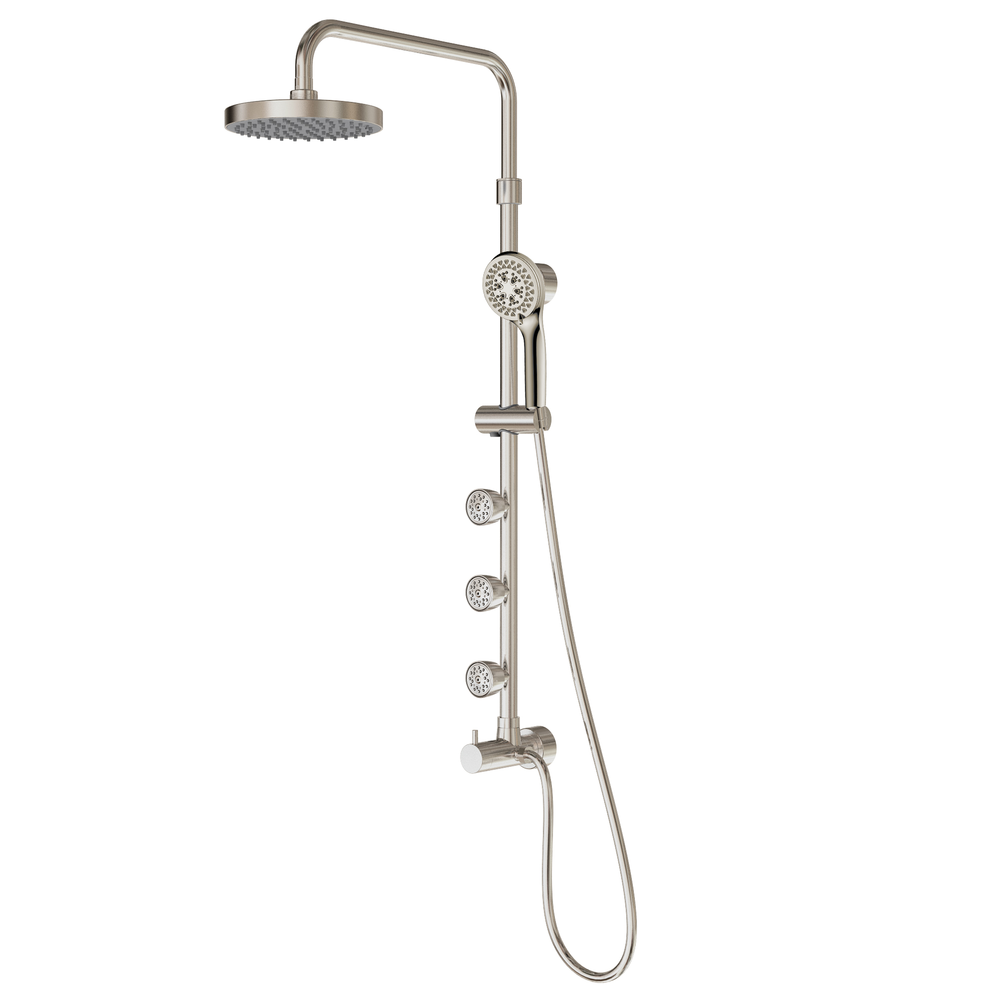 The Lanikai 3 Function Shower System quickly and easily transforms your shower. Enjoy fingertip control via the conveniently located diverter. Choose between a soothing, oversized rain shower head, convenient multi-function hand shower or rejuvenating dual-function body jets. The unique brass shower arm pivots side to side and has 3" of height adjustment. Adding style, convenience and function to your shower has never been easier.