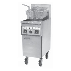 The 18 Incredible Frying Machine®high efficiency, high production fryer lets you cook 140 lbs. of frozen fries or 150 lbs. of chicken per hour with an input of only 118,000 BTU. The Instant-On™ system anticipates large loads to handle peak cooking requirements. Indicating lights tell the status of the fryer and two digital timers with repeat memories ensures precise cooking times.
