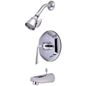 This tub and shower faucet is constructed of high quality brass to ensure reliability and durability. Its premier finish resists tarnishing and corrosion. All mounting hardware is included and standard US plumbing connections are used. Update your bathroom with this sturdy and stylish faucet.
