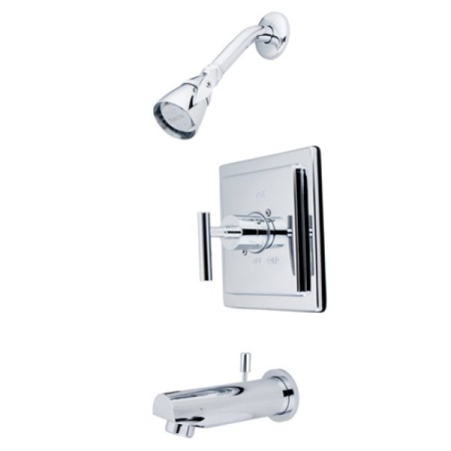 The tub and shower faucet is made of solid brass construction for functionality and long-lasting use. Its premium color finish resists tarnishing and corrosion with a 2.5 GPM at 80 PSI on its shower head. Best known for its sleek avant-garde look--the EOD style exhibits sophistication and contemporary elegance, a design made to make your bathroom vibrant and extravagant.