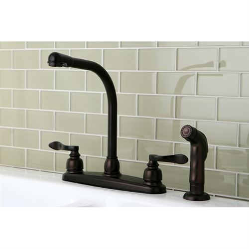 Double Handle 8" Centerset High-Arch Kitchen Faucet with Matching Sprayer
