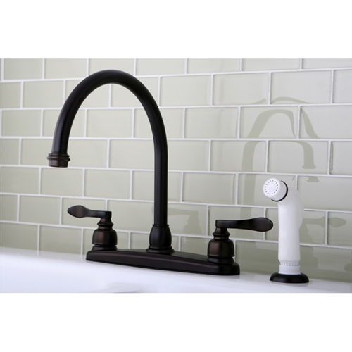 Double Handle 8" Centerset Kitchen Faucet with White Sprayer
