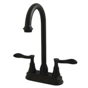 - Two-hole 4" centerset installation with a 90-degree rotation water control mechanism