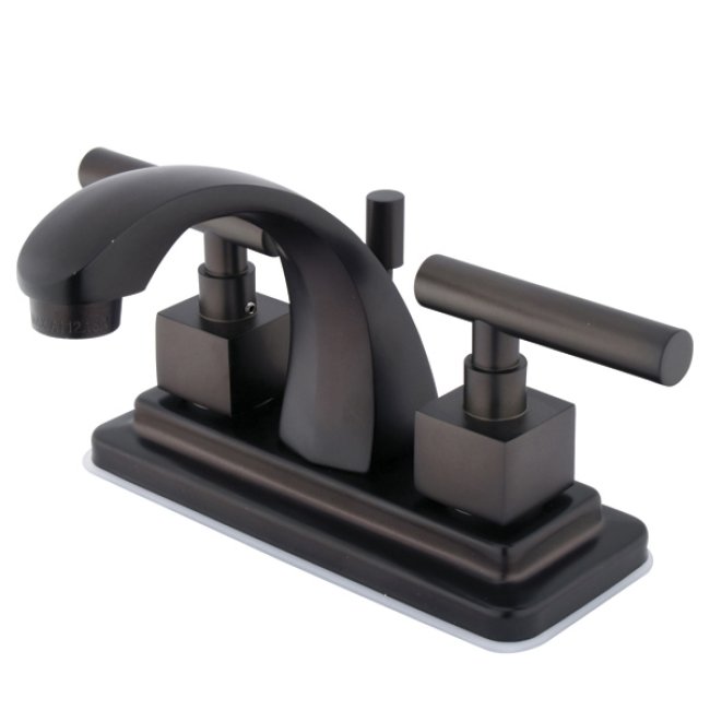 This faucet's angular elements and smooth detail provide contemporary appeal. This bathroom faucet has a deck mount setup and features a 4" centerset installation. The body is fabricated from solid brass for durability and long-lasting use. The color finish is made of oil-rubbed bronze for dark, vintage shade, as well as resisting scratches, corrosion and tarnishing. The spout has a reach of 4 inches and a height of 5 inches. The handles allow for easy management of water volume and temperature. The faucet operates with a ceramic cartridge valve for droplet-free functionality with the water measured 2.2 GPM (8.3 LPM) and a 60 PSI maximum rate. An integrated removable aerator is inserted beneath the spout's head piece for conserving water flow. A brass pop-up drain in a matching finish is included. All mounting hardware is included and standard US plumbing connections are used. A 10-year limited warranty is provided to the original consumer.