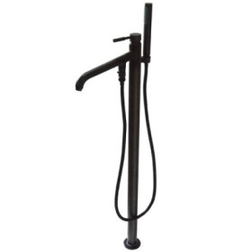 The Concord Pillar Roman Tub Filler features a slanted smooth surfaced spout attached to a 59" hose which connects to a hand shower mounted in the rear of a 37-13/16" vertical stand. The tubular handle lever above the spout controls water flow for both hot and cold temperatures. Adopted from the contemporary modern design, the filler is constructed in high quality brass for durability and long-lasting use.