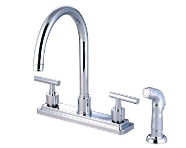 Kingston Brass Manhattan Double Handle 8" Kitchen Faucet with Non-Metallic Sprayer