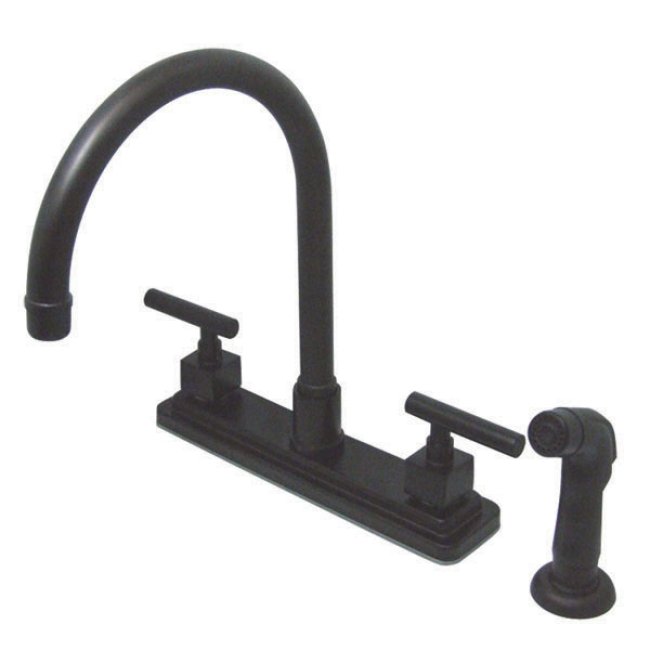 Kingston Brass Double Handle 8" Kitchen Faucet with Non-Metallic Sprayer
