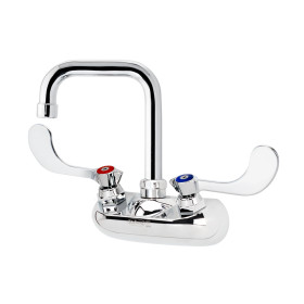 Silver Series 4" Center Wall Mount Faucet with 4-1/2" Wide Double Bend Spout & Vandal Resistant Wrist Blade Handles