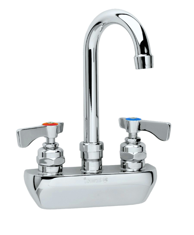 Krowne Royal Series Faucet, Splash-Mounted, 4" Centers, Gooseneck, 6" Long, Removable Cartridge Valve Assembly, NSF, CSA (Best), Low Lead Compliant