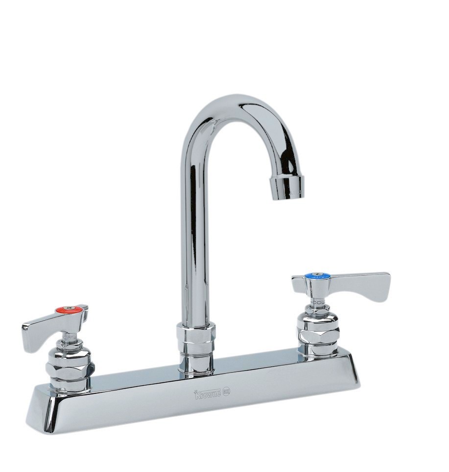 Krowne Royal Series Faucet, Deck-Mounted, 8" Centers, Gooseneck, 3-1/2" Wide, Mounting Kit, NSF, CSA (Best) (Replaces T&S B225), Low Lead Compliant