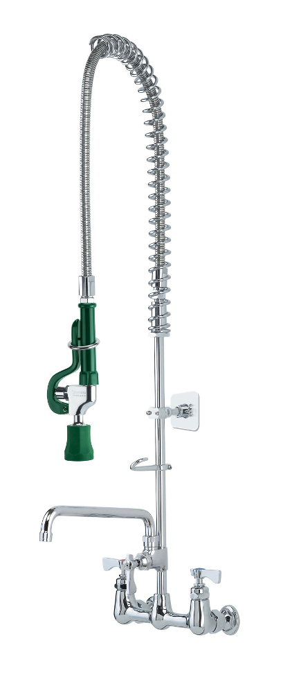 Krowne Royal Series Pre-Rinse Assembly w/Wall Bracket, Wall-Mounted, 8" Centers, Add-On Faucet w/12" Spout, Low Lead Compliant