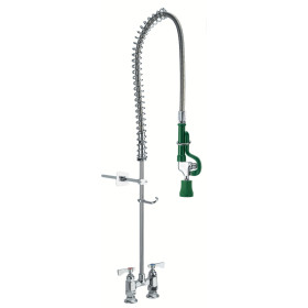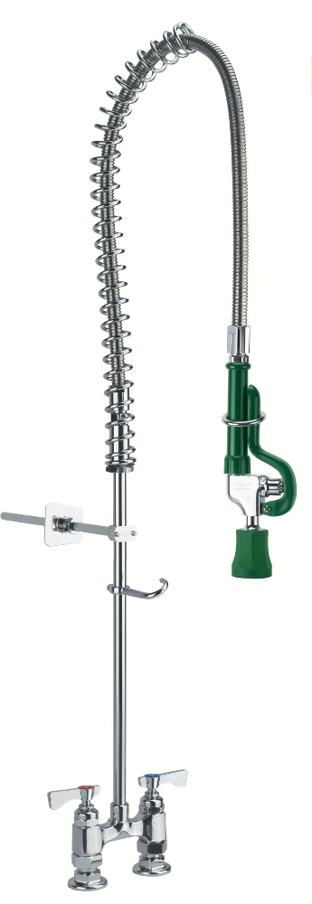 Krowne Royal Series Pre-Rinse Assembly w/Wall Bracket, Deck-Mounted, 4" Centers, Spring Action Flexible Gooseneck, 38" High w/14" Overhang, 1/2" NPT Male Inlets, NSF, CSA, Low Lead Compliant