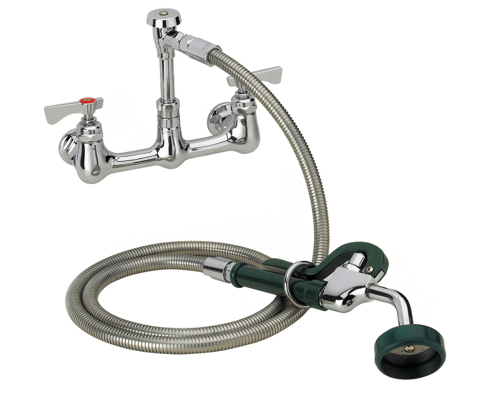 Krowne Royal Series Utility Spray Assembly, Wall-Mounted, 8" Adjustable Centers, 72" Long Galvanized Steel Flexible Hose, Plastic Coated Wall Hook, Vacuum Breaker, 1/2" NPT Female Inlets, NSF, CSA, Low Lead Compliant