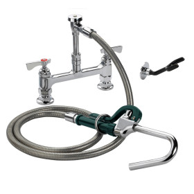 Krowne Royal Series Pot Filler Assembly, Deck-Mounted, 8" Adjustable Centers, 72" Long Galvanized Steel Flexible Hose w/Pot Hook Valve, Plastic Coated Wall Hook, Vacuum Breaker, 1/2" NPT Male Inlets, NSF, CSA, Low Lead Compliant