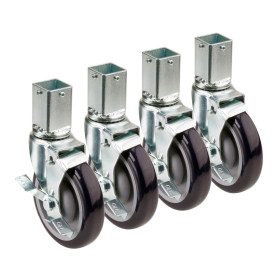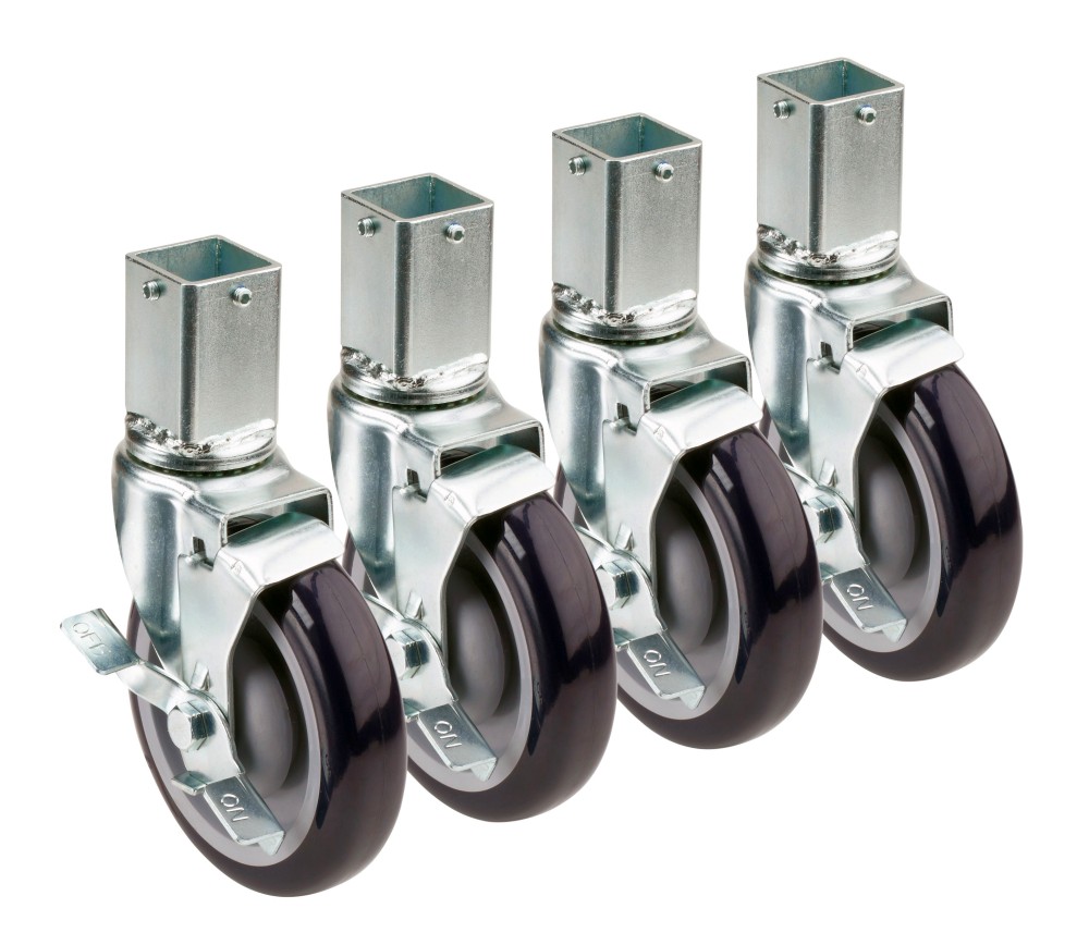 Krowne 1-1/4" Square Post Shelving Caster, Locking Wheels, 5" Diameter, Set, (4 Pieces per Set)