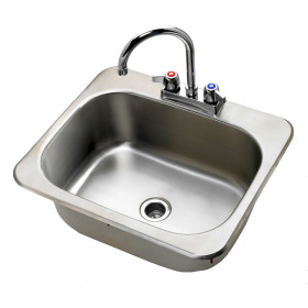 Krowne Drop-In Hand Sink, 1 Compartment, 20-1/4" x 17" x 17-3/4" OA, 17-3/4" x 12-3/4" x 7-3/4" Deep Bowl, w/Deck Mounted 6" Gooseneck Faucet, 1-1/2" Drain, Stainless Steel Construction (18-1/4" x 15-1/2" Cutout)