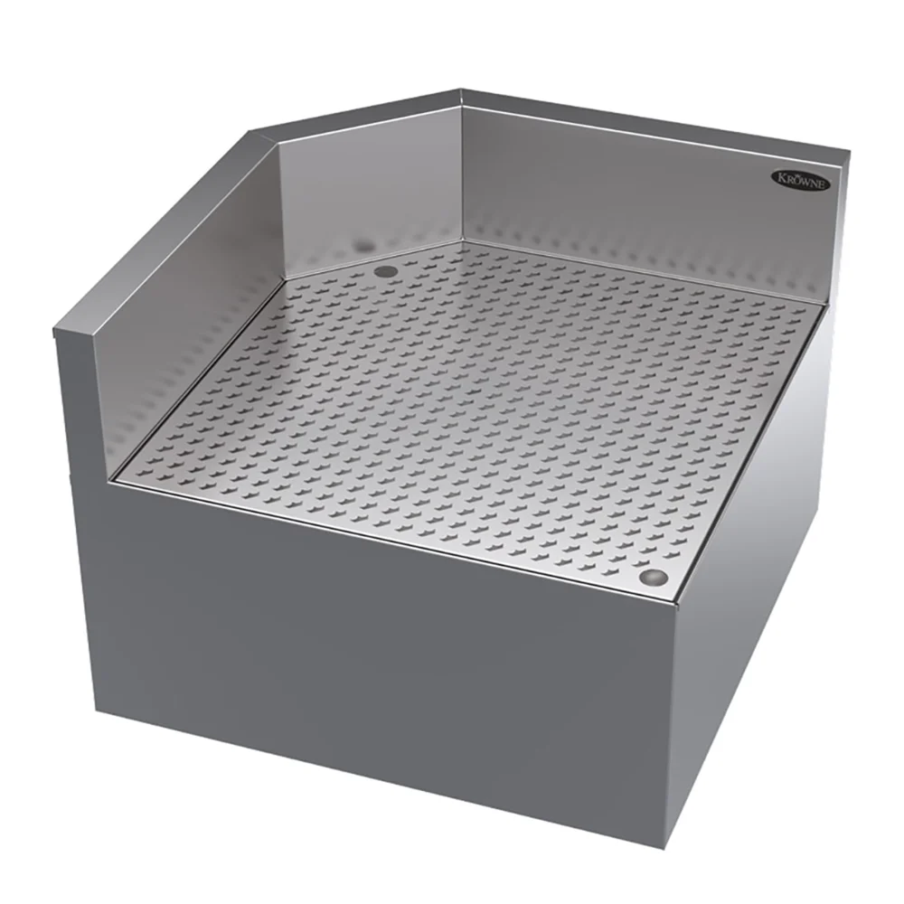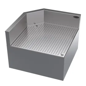 Designed to fit in the corner of an underbar workspace, the Krowne KR24-DRC90 underbar rear angle filler plugs up empty space and has a drainboard for air drying glasses. To support heavy loads, the drainboard has a 1-inch-diameter drain and welded braces. The unit's stainless steel construction is durable, rust resistant, and simplifies cleaning.