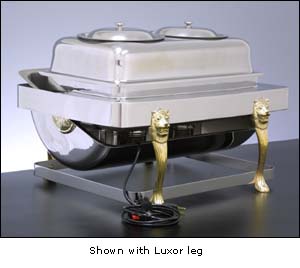 - Side trunnions eliminated allows for more chafers on a table with better space utilzation and an attractive presentation.