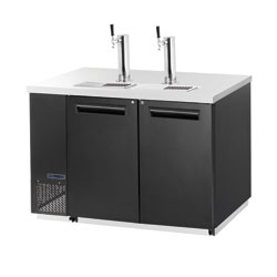 - Maxx Cold’s keg coolers with direct draw beer towers feature a sanitary stainless steel top and black coated steel exterior for durability and easy cleaning.