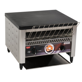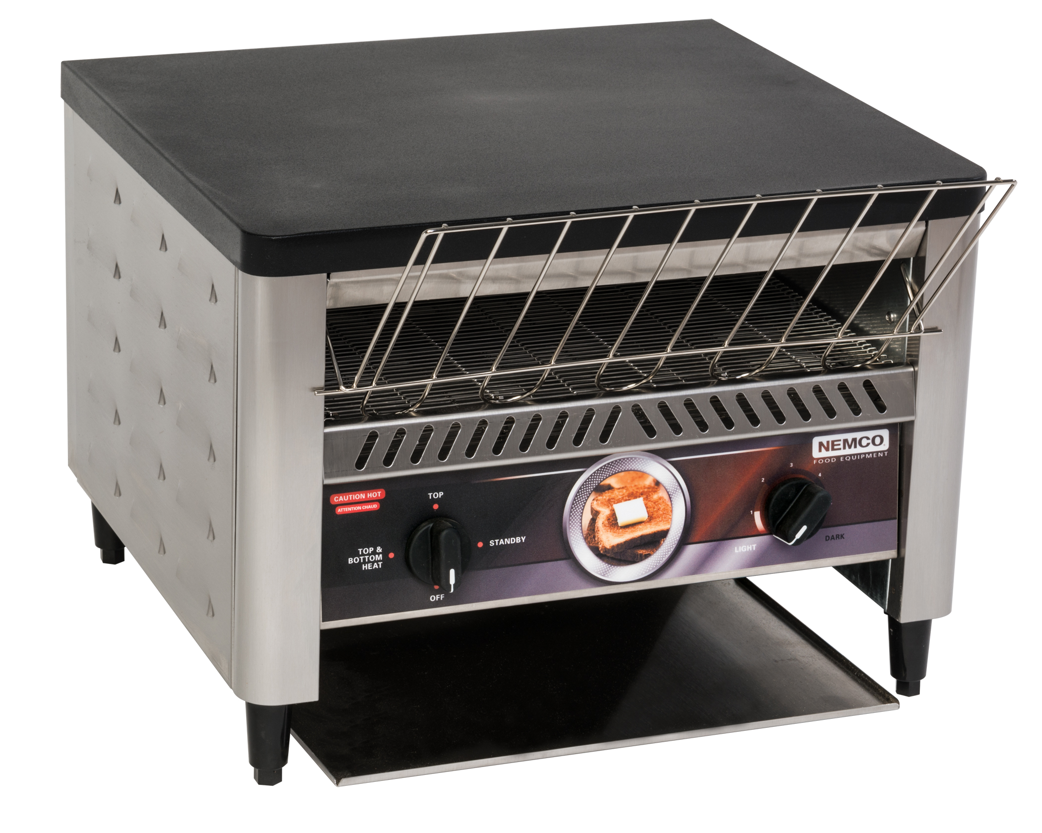 Set it up and let it run. Nothing delivers better toasting perfection, with less maintenance hassle, than the NEMCO Conveyor Toaster. Simple design features ensure outstanding performance and no wasted energy. NEMCO's proprietary element pattern provides consistent toasting, left to right, across the entire conveyor. The convenient 4-postion rotary switch lets you choose from toasting on one side, toasting on both sides, standby mode or off. The 6800 has a 300 piece capacity per hour and the 6805 has a 1000 piece capacity per hour.