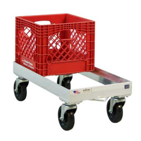 APPLICATION: These dollies are specifically designed to store and transport 13”x13” milk crates. This allows for more efficient transporting from the trucks to the coolers.