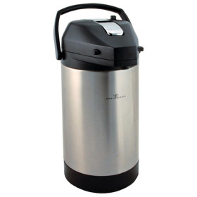 The ShurizJo vacuum insulated stainless steel coffee airpot keeps beverages hot for 6 hours. The durable high impact polycarbonate plastic\stainless steel exterior and stainless steel interior liner provides a virtually indestructible thermal system. The brew through lid allows for maximum heat retention during brewing and serving. The carrying handle allows for total coffee mobility, the travel lock eliminates spills on the move and the reinforced pivot handle swings either front or back.