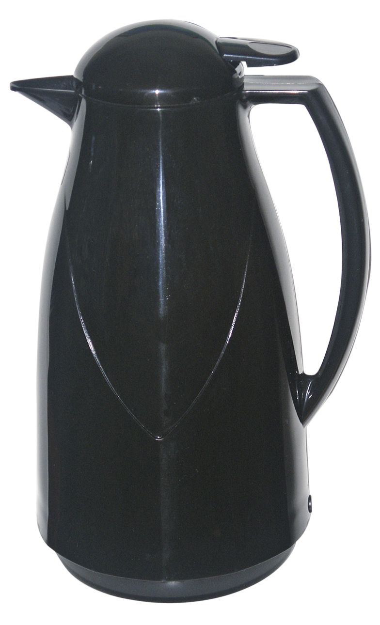 The NewTech AG-KB10BK coffee server holds 1.0 liters and is vacuum glass lined to keep liquids warm. This decanter has a durable high impact plastic body. The one hand operation lid allows for easy pouring. Comes in white and black