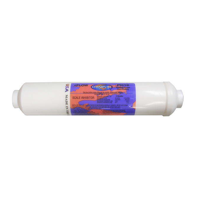The Omnipure PH10 water filter is a 10 micron inline filter that protects against All Phoshate and KDF.