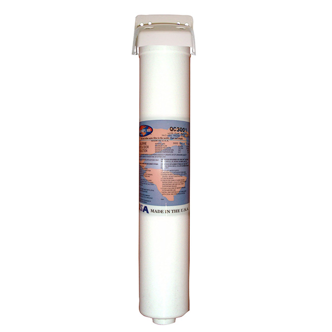 The Omnipure QC3001 water filter is a 1 micron inline carbon block filter that protects against Taste, Odor, Chlorine, and Cyst.