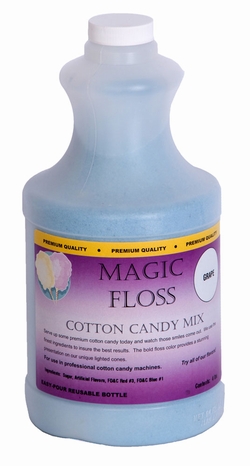 Paragons Floss Sugar Case is available in 8 different flavors. The Case includes 6-4lb Bottles. The Cotton Candy Sugar Floss is packed in a sealed easy pour bottle. Simply unscrew the bottle and pour directly into the cotton candy machine's spinner head. No messy missing or unsanitary sugar buckets!