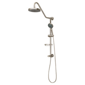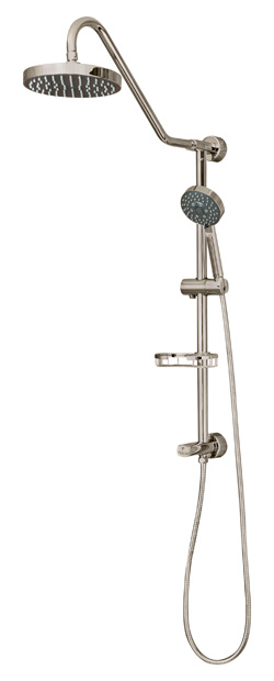 Designed to use your existing valve, it replaces the old showerhead with an elegant rain showerhead, multi-function handheld with adjustable slide bar and wire basket soap dish. The diverter is located at the bottom of the slide bar, convenient for all heights. Easily installs in less than 20 minutes.
