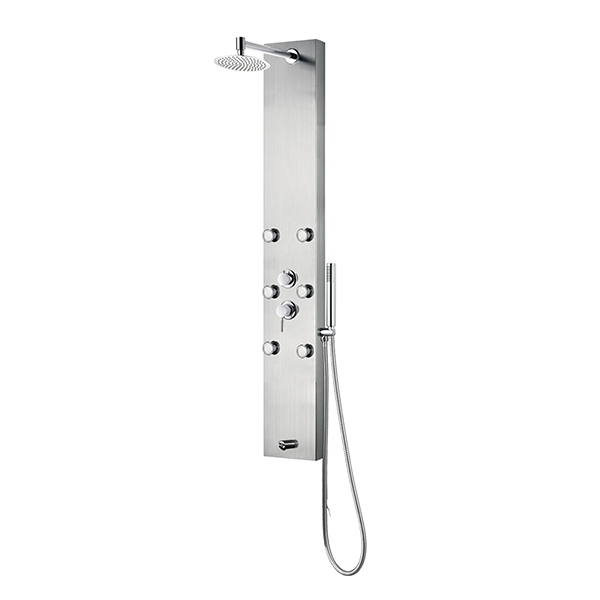 The PULSE Monterey ShowerSpa is a beautiful shower with chrome fixtures and stainless steel body. Equipped with six single-function brass Silk Spray Jets™, a sleek wandshaped handshower, a convenient spout integrated into the panel, and a stainless steel rain showerhead on a brass shower arm. Designed to fulfill every showering need, the PULSE Monterey ShowerSpa will give you a new shower experience every day!