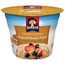 Quaker Oatmeal Express delivers a warm and delicious breakfast flavored with maple brown sugar. Simply add hot water to the high-fiber treat. Single-serve, insulated microwavable or hot water-friendly cup makes it quick and easy to prepare. Easy internal fill line on the curved bowl and a cool-to-the-touch exterior make Oatmeal Express truly portable. Sold as 1.69 oz Oatmeal Cups 24 total.