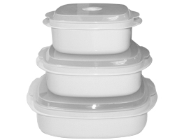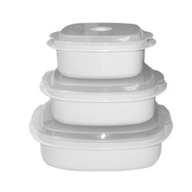 Who knew storing your food could look so good - This microwave set comes with adjustable steamer lids that will allow the foods to retain their nutritional value as well as the fresh flavor in no time at all. It goes from freezer to microwave with no problem. Once your done with the containers just throw them in the dishwasher for quick and hassle-free clean up. Calypso Basics Microwave Steamer Set Includes: 40 oz container with lid/ 28 oz container with lid/ 16 oz container with lid. Features Made of plastic Dishwasher safe.