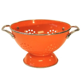 This 1.0qt colander is made of enamel on steel with stainless steel rim and chrome plated handles. Great for straining or simply displaying fruit on the table, this colander will catch attentions to your kitchen.